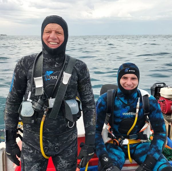 Recently my son Liam has been working with me underwater which has been a great opportunity to share my passion with him. When we are both diving, we use a hookah T-Piece which is an air hose that runs right from the boat directly to each of our mouth-pieces to give us oxygen underwater.